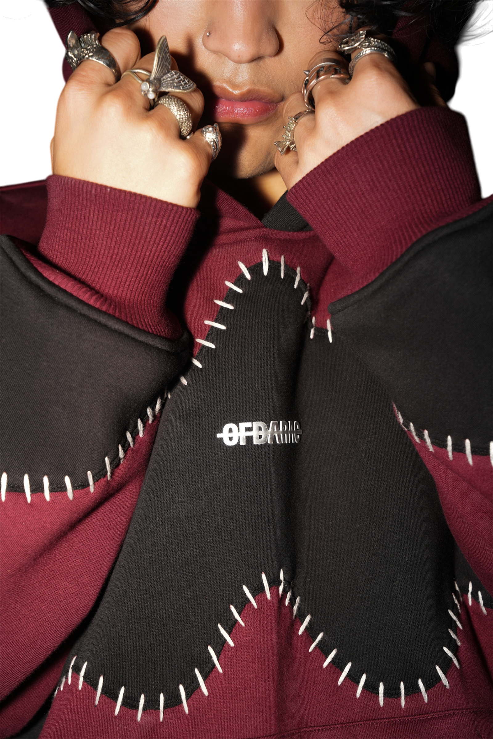 Handcrafted chaos. Intentional imperfection. The Stitched Reality is more than just a hoodie—it’s a reflection of resilience stitched into form. Every patch, every thread, is placed by hand to tell a story of recovery, strength, and raw beauty. Designed in a deep wine and black palette, it captures the clash between passion and void—stitched together to become something whole again.